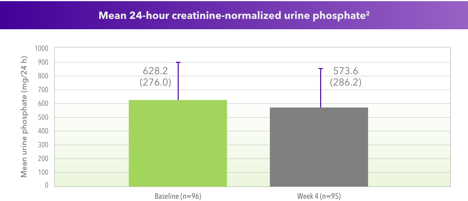 - No patients had hypophosphatemia (< 2.5 mg/dL) during study period
